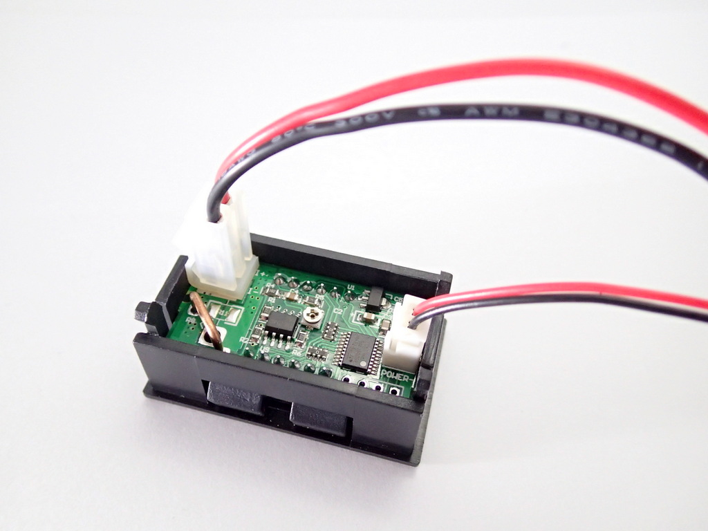 - สายเส้นเล็ก ดำ(-) แดง (+)ใช้สำหรับต่อแหล่งจ่ายให้กับแอมมิเตอร์ใช้ไฟเลี้ยงได้ตั้งแต่ 4-30V DC